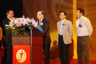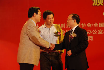 人民網食品頻道3月20日訊 (特派記者 孫杰 成都報道 賀吉 攝影) 今天下午,在成都舉辦的第78屆糖酒會的“中國糖酒食品行業年度盛典暨2007年中國糖酒食品業年度企業、年度人物、年度暢銷品牌、年度最具成長力品牌頒獎典禮”上,酒鬼酒獲獎代表酒鬼酒副總經理范震在發表“獲得年度企業”的感言時,公開向兩位“老大哥”茅臺和五糧液“叫板”。