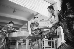 | 解放軍某救援部隊(duì)副政治委員周厚國(guó)帶領(lǐng)官兵轉(zhuǎn)移酒品
