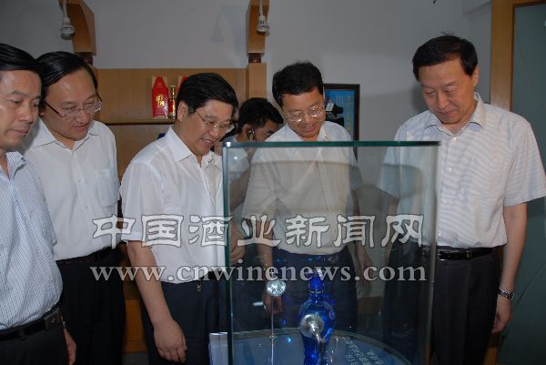 洋河酒廠董事長、黨委書記楊延棟(右三)陪同江蘇省省長羅志軍(右一)、宿遷市委書記張新實(右二)一行參觀企業。