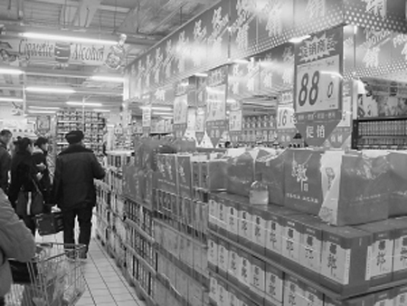 隨后,記者來到市區一家大型超市的酒水專柜,超市內白酒的銷售情況也出現不溫不火的情況。“今年年末高檔白酒的銷售情況和平時沒有多大區別。我們現在有時候一天都賣不出去一瓶茅臺。”這家超市酒水專柜負責人李經理說。不僅高檔白酒的銷售情況不盡如人意,超市內各個品牌的中低端白酒雖然大打折扣,但是銷售情況也沒有明顯地上漲。