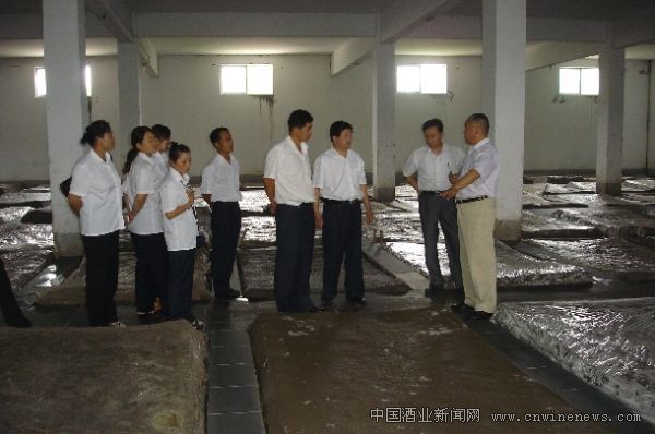 乾隆杯酒業副總經理董志東帶領山東黃河王酒業有限公司一行參觀釀造車間。
