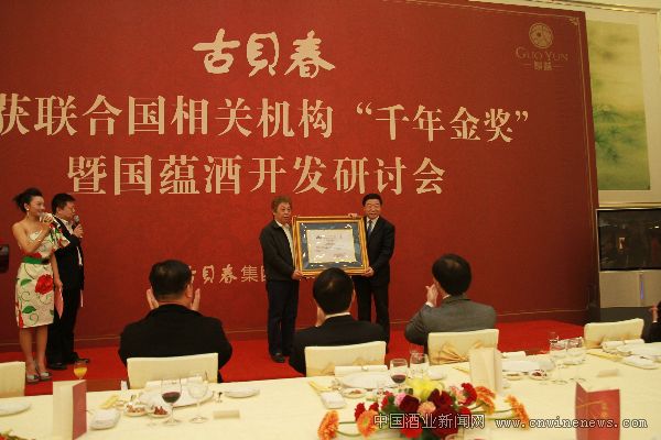 古貝春榮獲“聯(lián)合國(guó)相關(guān)機(jī)構(gòu)千年金獎(jiǎng)”暨“國(guó)蘊(yùn)酒”開(kāi)發(fā)研討會(huì)舉行