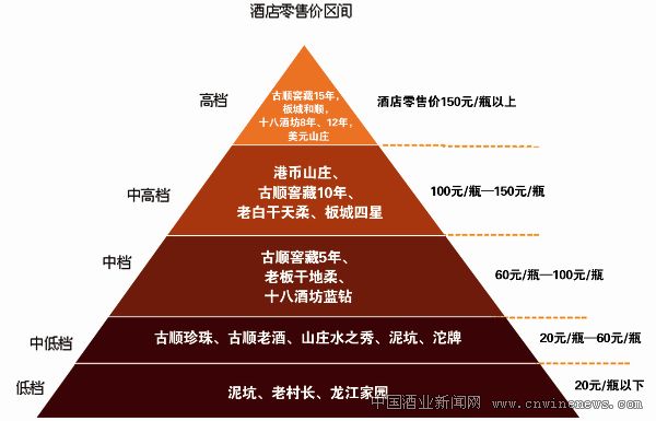 目前邢臺白酒市場上的中檔白酒基本上也是以“多渠道”策略為主,即以總經銷和分銷商為主的分銷模式,針對酒店、超市、零售終端即流通市場等多種渠道,采取多管齊下的渠道政策,以達到產品的高曝光率、高鋪貨率,爭取銷售機會的最大化。如:山莊、泥坑、古順等。