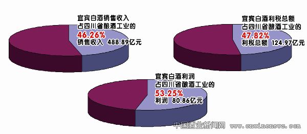 “十一五”期末,四川宜賓白酒生產(chǎn)企業(yè)發(fā)展到284家,其中規(guī)模以上企業(yè)達(dá)到28家,全市規(guī)模以上酒類企業(yè)完成酒類產(chǎn)量34.29萬(wàn)千升,銷售收入達(dá)到488.89億元,白酒規(guī)模以上企業(yè)利稅總額實(shí)現(xiàn)124.97億元,利潤(rùn)實(shí)現(xiàn)80.86億元,分別比2007年增長(zhǎng)138.35%、83.35%、124.77%和147.32%。宜賓白酒的銷售收入、利稅總額、利潤(rùn)分別占四川省釀酒工業(yè)的46.26%、47.82%和53.25%,比2007年實(shí)現(xiàn)了產(chǎn)量、銷售收入、利稅三個(gè)翻番。其中,宜賓白酒產(chǎn)值已達(dá)到四川省釀酒工業(yè)的50%、全國(guó)釀酒工業(yè)的20%。