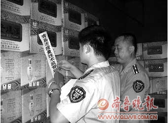 青島市質(zhì)量技術(shù)監(jiān)督局查封無(wú)證生產(chǎn)白酒萬(wàn)瓶