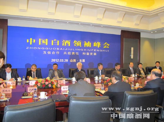 2012年3月28日,由中國釀酒工業協會舉辦的“中國白酒領袖峰會”在山西太原隆重召開。中國釀酒工業協會理事長王延才、中國白酒標準化技術委員會主任委員季克良、貴州茅臺酒集團有限公司董事長袁仁國、宜賓五糧液集團有限公司董事長唐橋、江蘇洋河、雙溝集團有限公司董事長楊廷棟、瀘州老窖股份有限公司總裁張良、山西杏花村汾酒集團董事長李秋喜、四川沱牌舍得股份有限公司董事長李家順、中國釀酒工業協會白酒分會秘書長趙建華等協會領導以及部分企業領導出席了峰會。中國釀酒工業協會白酒分會副秘書長宋書玉、甘權,中國釀酒工業協會產業政策研究室副主任李言冰等20余人參加了會議。