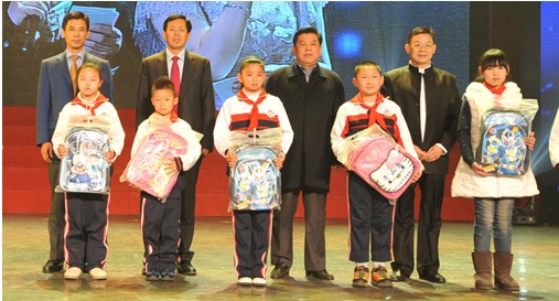 茅臺白金酒董事總經理蔡芳新、董事林國良等領導為“留守兒童”送上愛心書包