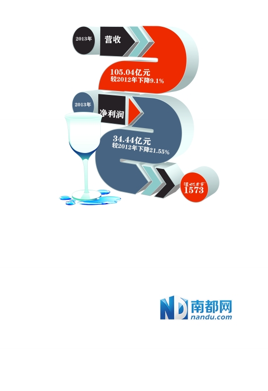瀘州老窖在業績快報中表示,2013年因行業深度調整,公司國窖1573等主導產品銷售量下滑致使營業收入、凈利潤等主要經營指標出現不同程度的下降。