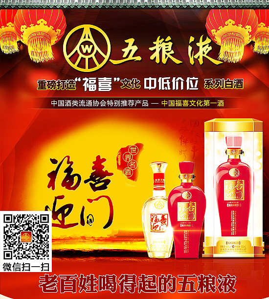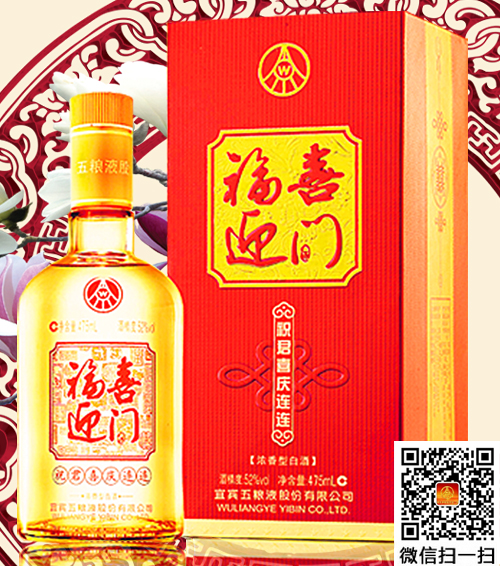 五糧液福喜迎門酒是五糧液集團為新中國成立60周年大慶獻禮專門推出的:其發酵酵池、釀制過程、質量控制等與五糧液是完全一樣,其口感品質特點:窖香濃郁、淳厚甘美、醇和綿甜、回味悠長、空杯留香、飲后不上頭,被譽為中國福喜文化第一酒!