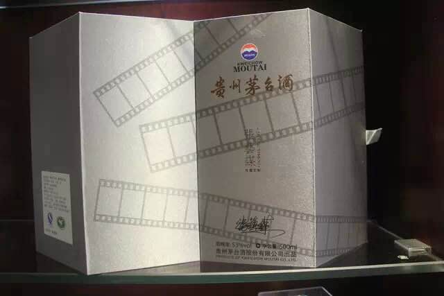 在此次張藝謀導演定制的茅臺酒上,以老電影膠片為設計素材。外包裝以膠片為底色圖案,印有張藝謀導演的簽名。銀色酒瓶瓶身以陶瓷制成,用老膠片浮雕的沉穩形象鐫刻了茅臺與電影藝術的歷史豐碑,老膠片與長城的形象輝映疊合,傳遞了電影的主題,也宣示著茅臺作為國酒在中國文化中的獨特地位,更彰顯著茅臺文化酒的屬性和愛國酒的精神。