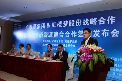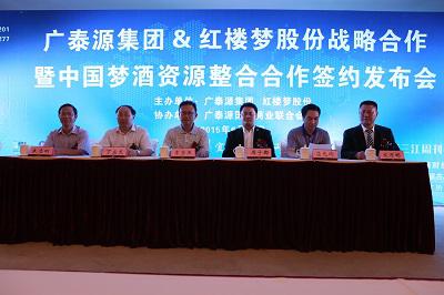 2015年6月19日下午,宜賓紅樓夢酒業股份有限公司迎來發展進程中的重要里程碑,由深圳廣泰源集團與紅樓夢酒業股份的戰略合作簽約儀式在中國酒都宜賓隆重舉行,并在宜賓市縣兩級政府領導和眾嘉賓的見證下進行了簽約儀式。紅樓夢酒業董事長文萬彬表示,中國夢酒將以此次簽約為契機,開展產業鏈一體化、供應鏈一體化,并運用廣泰源集團的“5.0版核動力商業模式”,開啟中國夢酒網絡營銷新篇章,從而引領酒業企業向金融資產證券化的成功轉型,繼續推動酒產業經濟的快速發展。