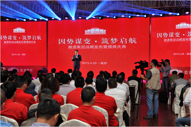 4月29日,“徽酒集團戰略發布暨揭牌慶典”在安徽高爐酒廠舉行。中共渦陽縣委書記、人大主任胡明文、徽酒集團董事長、總裁林勁峰、中國食品發酵研究院副院長宋全厚、徽酒集團副總裁程劍、徽酒集團副總裁梁德惠等集團高管、金融界的領導、來自全國的經銷商等近500人共聚高爐出席慶典儀式。徽酒集團提出,力爭在8-10年內,使徽酒集團成為安徽白酒行業的領軍企業。