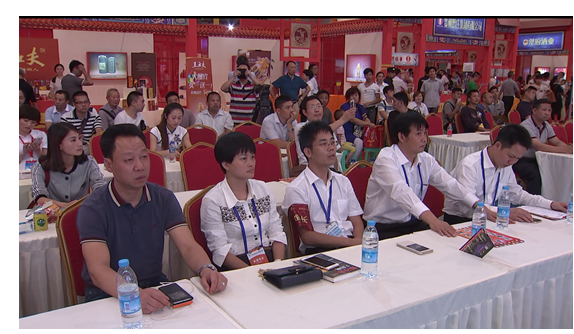 (圖中為仁懷市秒賺酒業(yè)董事長楊開發(fā)在酒博會上精彩演講 )