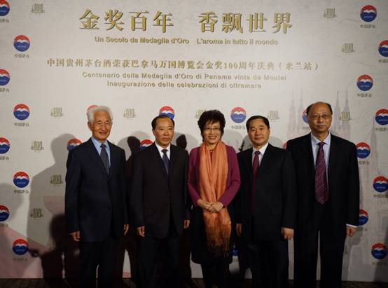 從左到右:茅臺集團名譽董事長季克良、茅臺集團董事長袁仁國、意大利米蘭總領事王冬、茅臺集團技術總顧問劉自力、茅臺集團副總經理呂云懷