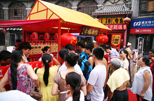 2014年,金六福酒對于異業聯盟的初次試水,從幸福大篷車活動開始。幸福大篷車在春節前后奔赴全國7省36個縣市,在不同的區域,聯合當地影樓、酒店、珠寶、汽車等異業品牌,開展了婚紗show、好聲音歌唱大賽等表演活動,共同打造了一系列與消費者近距離接觸的地推活動,為金六福酒積累了“平臺化”的操作經驗。