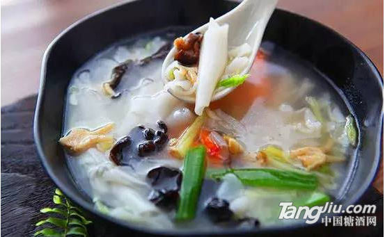 雞茸魚唇是福州地區(qū)一道非常著名的傳統(tǒng)名菜,是高級宴席中的必備大菜。將珍品魚唇去腥后用紹興酒腌醉,燒成雞茸湯,放入魚唇烘燴,撒上火腿末即成。菜色雪白,魚唇軟潤,富有膠質(zhì),味鮮爽口。