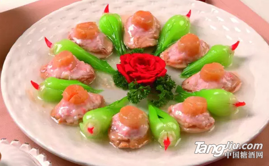 翡翠珍珠鮑是福州傳統(tǒng)名菜,選材主要是鮑魚,干貝。制作精細,形如翡翠,所以取名翡翠珍珠鮑。鮑魚是八珍之冠,干貝也是八珍之一,所以這道菜的營養(yǎng)非常豐富,而且造型美觀,味道鮮美,成為福州地區(qū)的宴席上品。