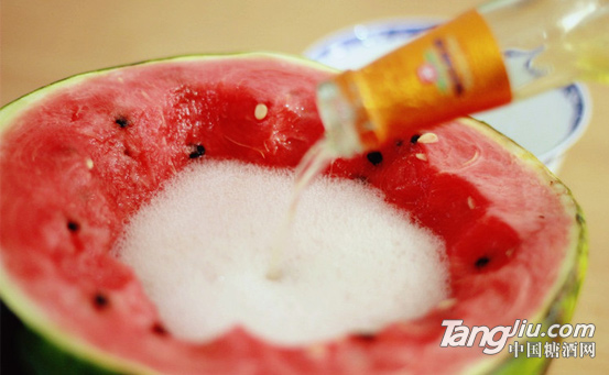 1、把西瓜洗凈后削去外皮,西瓜瓤搗爛成汁,加入白糖,把糖度調整到20%~22%