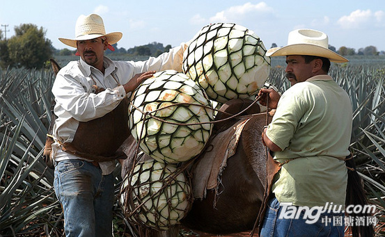 龍舌蘭是一種龍舌蘭科的植物,通常要生長12年,成熟后割下送至酒廠,再被割成兩半后泡洗24小時。然后榨出汁來,汁水加糖送入發酵柜中發酵兩天至兩天半,然后經兩次蒸餾,酒精純度達104proof一106proof,此時的酒香氣突出,口味兇烈。