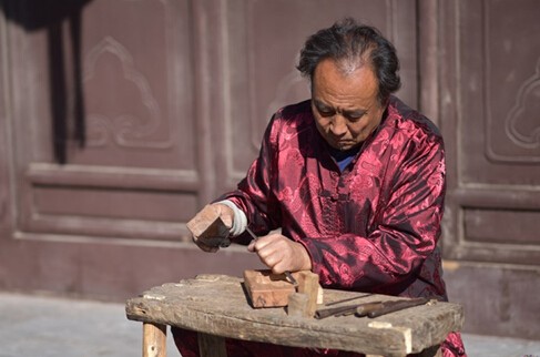 ▲ 非物質文化傳承人郭兆福現場親手細雕月餅模具