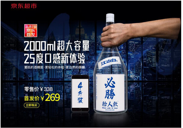 11月7日,京東超市全網(wǎng)獨家首發(fā)江小白新品——江小白必勝拾人飲。消費者登陸京東超市即可享受低至269元/瓶的首發(fā)價,上線當(dāng)天前100名購買者更可免費獲得精美溫酒器一份。