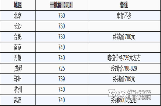 目前經銷商手里的貨大多是679元的成本價,相對于目前近740的一批價,順價已經實現。但是在實際的調查中,有經銷商如南京的貨已經是739元的成本價,一批價雖然已經提到了740元,“要實現真正的順價,還要市場驗證。”南京的經銷商如是說。