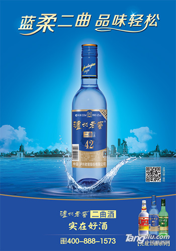 2015年,瀘州老窖藍柔二曲亮相成都糖酒會上,產品在口感和品質上全面升級,酒體度數設定為42°,飲用起來更為柔和、輕松。在產品設計上,藍柔二曲系列采用時尚的藍色瓶型,瓶身透亮高檔,喝光瓶酒也是一種時尚。