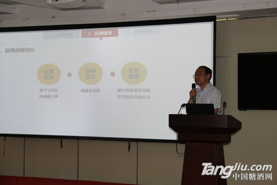 隨后,亳州古井銷售公司總經理助理張懷貴先生登臺為在座的經銷商們分享古井的品牌文化,從業務范圍到戰略規劃,將新時期的古井全方位立體化的呈現在大家面前。