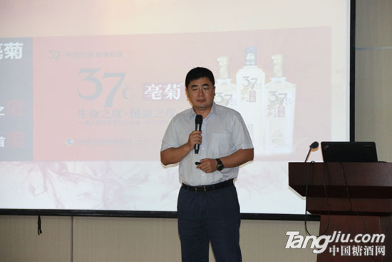 在經銷商們系統的了解了古井之后,亳州古井銷售有限公司總經理助理羅天祥先生登臺為大家詳細介紹了37°亳菊酒的產品定位及古井新酒商的戰略規劃。