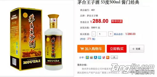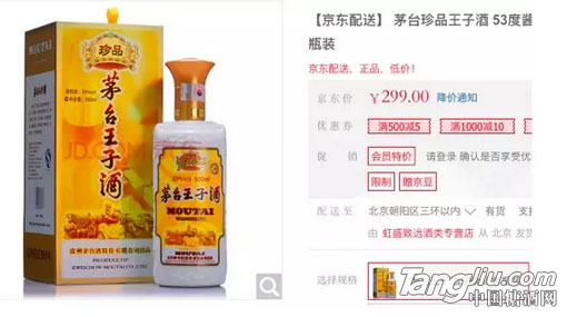 據悉,“珍品王子酒”是茅臺在2004年秋糖期間推出的新品。據當時茅臺酒銷售公司副經理李進介紹,“珍品王子酒”零售價格初步是在180元。而2004年的180元價格與當時的劍南春基本持平。2004年7月份劍南春零售價在168-178元左右。