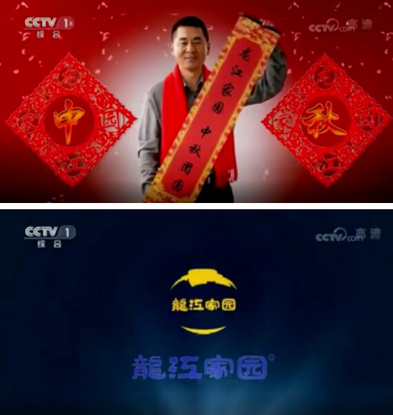 (龍江家園酒業在中央電視臺CCTV-1頻道播出的廣告畫面)