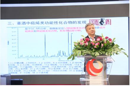 多年來,關于董酒的成分和功能的傳聞不絕于耳,但感性的描述終究不如科學的論證。2008年,貴州董酒有限公司董事長蔡友平決定正式成立課題組,重點研究“董酒對人體的健康作用”。在貴州省主管部門的支持下,董酒展開了一系列工作,包括與江南大學建立校企合作項目,從科研角度進一步探尋董酒的奧秘。江南大學于2011年從董酒中檢測到52種萜烯類化合物并于2013年形成報告:《科學認識中國白酒中的生物活性成分》,震驚國內外業界人士。
