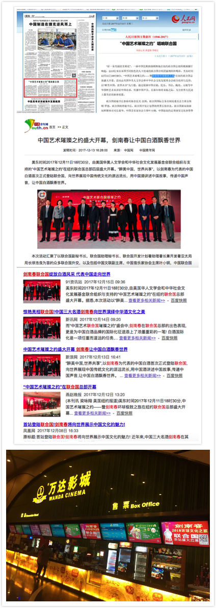 此外,本次活動也在國內(nèi)萬達(dá)影城、商場等線下渠道進(jìn)行大范圍地推廣曝光,讓更多的消費者知道并了解這次活動,在大洋彼岸為劍南春的聯(lián)合國之行宣傳造勢。