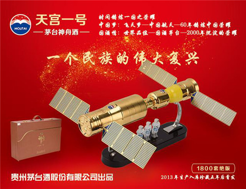 為紀念天宮一號,貴州茅臺酒股份有限公司于2013年12月隆重推出天宮一號特制紀念酒,將天宮一號與神舟十號