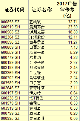 2017上市酒企成本榜:五糧液廣告費(fèi)30億