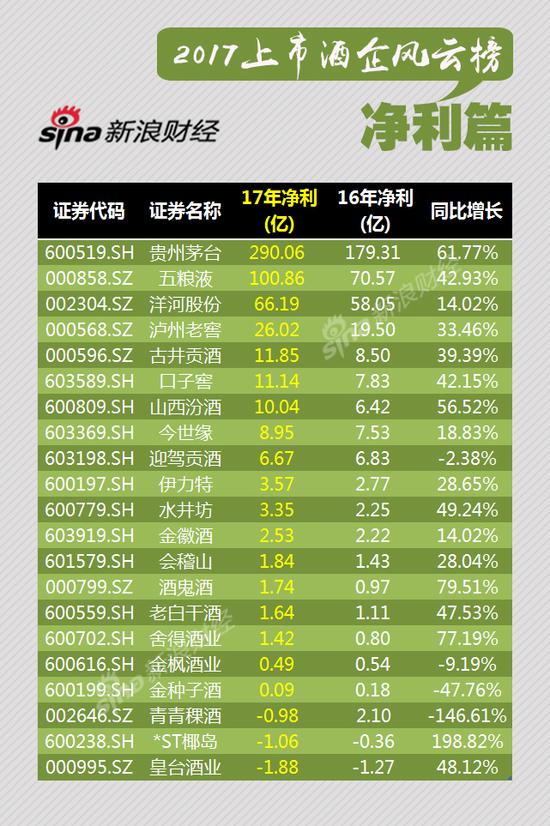 2017上市酒企賺錢榜:茅臺一騎絕塵