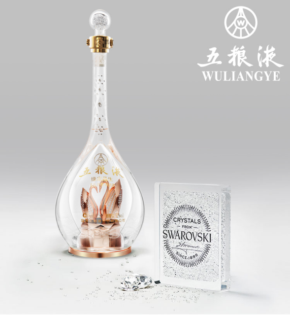 “五糧液·緣定晶生”系列共有兩款產(chǎn)品,戒指款零售價(jià)1980元/瓶,瓶身采用戒指元素,表達(dá)婚姻中相愛一生的承諾,瓶上兩只栩栩如生的天鵝,象征了忠貞不渝的愛情,瓶頸部由意大利工匠精選璀璨水晶,并親手鑲嵌而成;天鵝款零售價(jià)5200元/瓶,采用瓶中瓶設(shè)計(jì),由兩只施華洛世奇經(jīng)典水晶天鵝構(gòu)成愛心形狀,瓶頸手工鑲嵌施華洛世奇水晶,瓶蓋鑲嵌水晶沙,體現(xiàn)出對于愛情的美好祝愿。