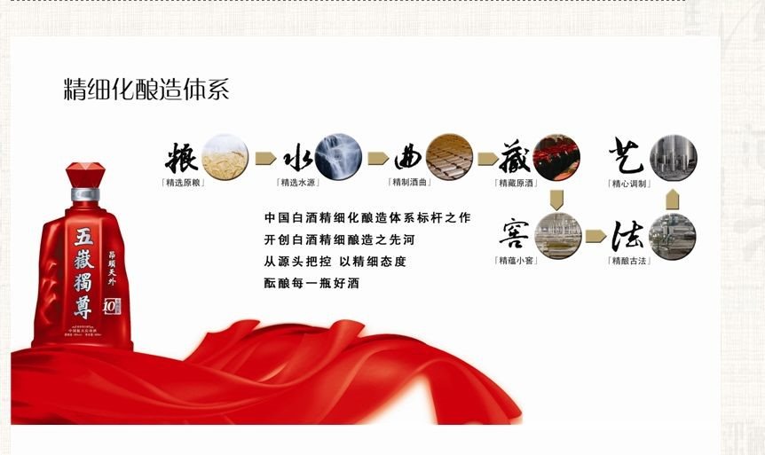 五岳獨尊承襲世代古法,精選泰山原產地的優(yōu)質小麥、大麥、豌豆為原料,嚴格限定制曲時間,聚春夏之精,以天曲為媒。曲成之后,置于恒溫地室培養(yǎng),助力酒曲發(fā)酵成熟,再經樣品采集、富集培養(yǎng)、純種分離、性能測定、編號保藏,直至制曲掛衣,多層嚴格把關,保證曲優(yōu)而后成酒香;精密計算發(fā)酵周期,采取雙重工藝,既承繼傳統(tǒng)的混蒸混燒老五甑工藝,又兼有少量清蒸混燒工藝;泰山酒業(yè)將非物質文化遺產——泰山酒傳統(tǒng)釀造技藝與航天育種完美締合,在繼承中發(fā)展,在發(fā)展中創(chuàng)新,以時間醞釀芬芳,成功造就極致之品。