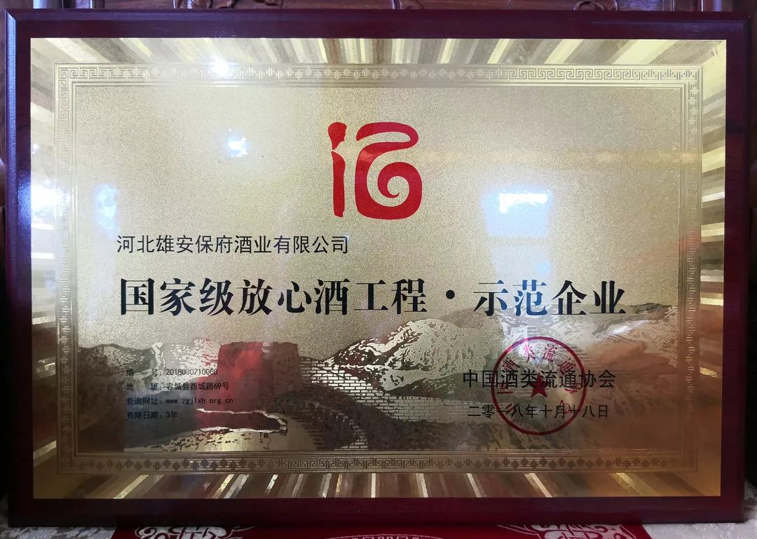 雄安保府酒業(yè)榮獲“國家級(jí)放心酒工程·示范企業(yè)”
