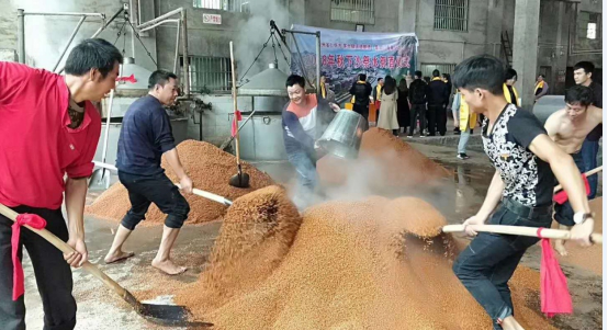 二、同一批原料要經過九次蒸煮、八次加曲、七次取酒,歷時整整一年。