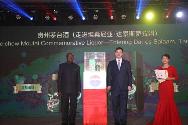 茅臺(tái)集團(tuán)黨委委員、副總經(jīng)理?xiàng)罱ㄜ娕c坦桑尼亞前副總統(tǒng)、前總理約翰·馬賽馬拉,共同發(fā)布了貴州茅臺(tái)酒“走進(jìn)坦桑尼亞·達(dá)累斯薩拉姆”紀(jì)念酒