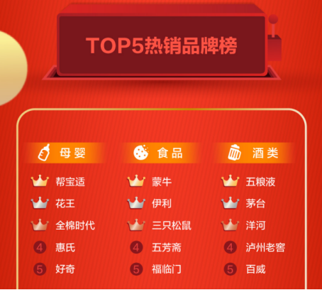 京東超市618開門紅戰報中,酒類熱銷品牌Top5中五糧液名列第一