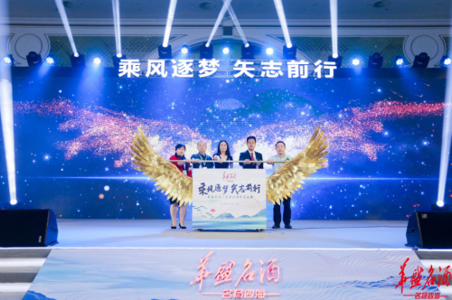 ▲華盛名酒·筑夢少年1+1公益助學行動授旗儀式