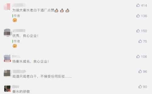河北地區人民群眾紛紛表示,通過此次行動看到了衡水老白干的勇毅擔當,能夠在困難時刻積極承擔社會責任的企業,必將走的更加長遠,擁有更好的發展!作為家鄉的知名白酒,果然粉衡水老白干是不會錯的!