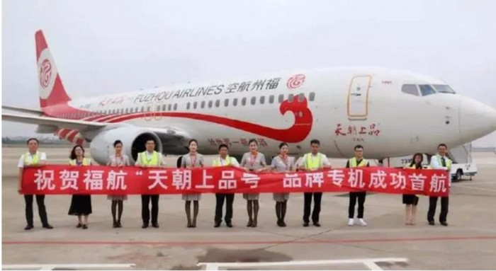 2018年5月31日,福州航空編號為B-7395的波音B737-800型客機“天朝上品號”首航儀式在福州長樂國際機場舉行,本架“天朝上品號”是天朝上品第二架品牌專機,也是福州航空開航以來的首架跨界合作品牌專機。這不僅是白酒行業(yè)與航空企業(yè)跨界融合、共塑品牌的又一舉措,揭開了雙方深化合作、互利共贏的新篇章,更是天朝上品全面啟動海陸空天品牌戰(zhàn)略以來,圍繞締造世界級中國品牌打出的又一記組合拳。