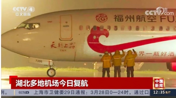 3月29日,在中央電視臺CCTV-1綜合頻道、CCTV-4中文國際頻道、CCTV-13新聞頻道滾動播出的《戰(zhàn)疫情·特別報道》《湖北多地機場復航 首個航班起飛 湖北復航首個航班從宜昌順利抵達福州》新聞中報道,根據(jù)《中國民航局關(guān)于恢復湖北省民航航班的通知》,自3月29日零時起,恢復湖北省除武漢天河機場外其他機場國內(nèi)客運航班,因疫情防控需要暫不恢復湖北省各機場國際及港澳臺地區(qū)客運航班,暫不恢復湖北省各機場往返北京客運航班包括經(jīng)停航班。