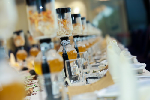 荷仙菇晶瑩剔透,潔白細嫩,是世界最名貴的食藥用菌之一;而雞油菌是自帶“雞湯”的美味山珍,兩者結(jié)合,采用虹吸裝置進行加熱,菌菇湯清香四溢,氣味獨特。此湯要趁熱喝下,不能讓它的鮮美稍縱即逝。