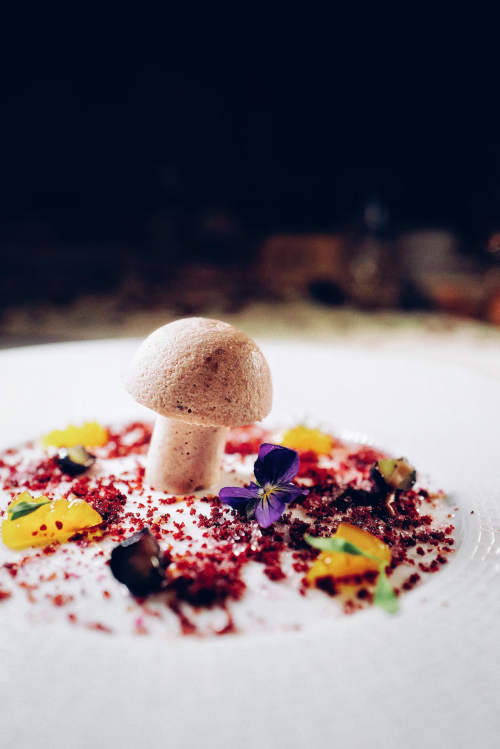 云南是一座彌漫玫瑰花香的城市,在鮮花盛開的季節(jié),我們用玫瑰花制作成醬,花香濃郁,齒頰留香,菌菇形狀的冰激凌與第一道菜“香格里拉的濕地”首尾呼應,完美收官。
