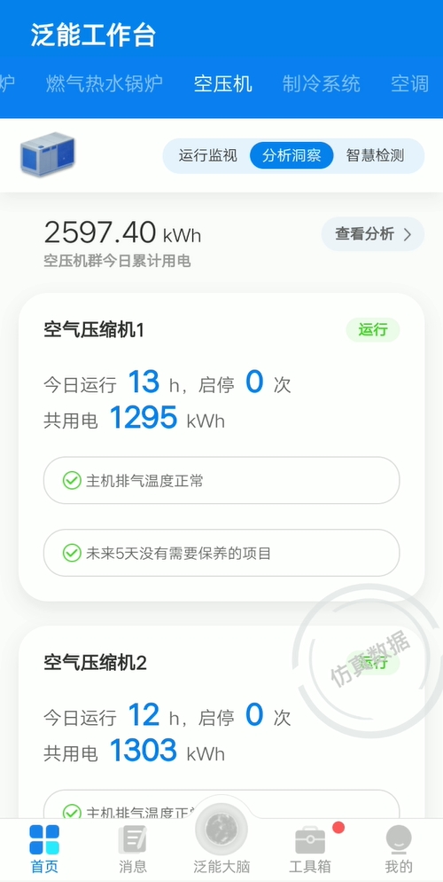 智慧運維和安全管控:通過泛能網平臺,可在線監測空壓、制冷等關鍵能源設備運行情況,診斷運行參數和指標情況,實現智能預警,及時發現故障異常,助力設備安穩運行。