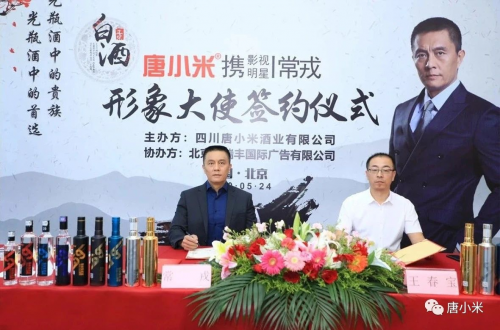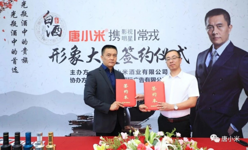在眾多嘉賓朋友及媒體的見證下,四川儒風酒業集團—四川唐小米酒業有限公司董事長張陌(先生)、總經理王春寶(先生)與影視演員常戎(先生)進行了合作簽約,國影總經理王家存(先生)等相關領導及嘉賓出席了本次活動。